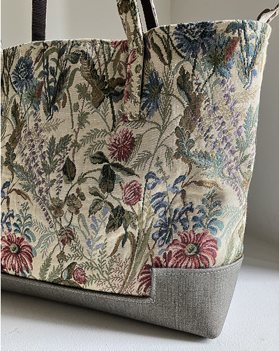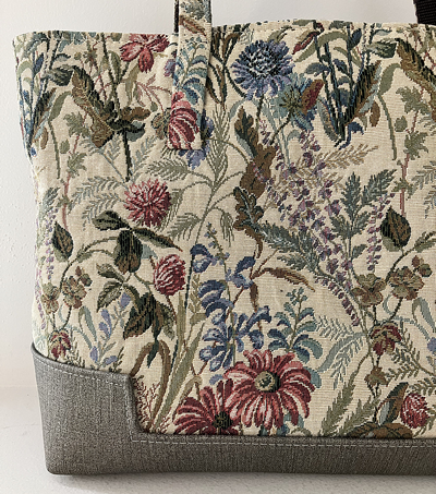秋草の花々が織りなす美しいゴブラン織りのトートバッグです。