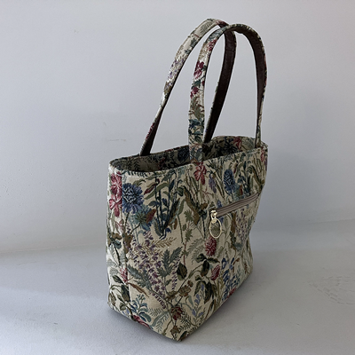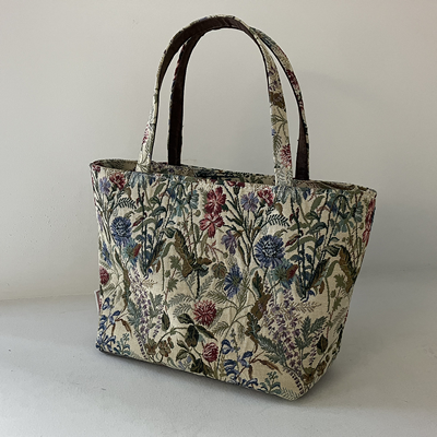 秋草の花々が織りなす美しいゴブラン織りのトートバッグです。